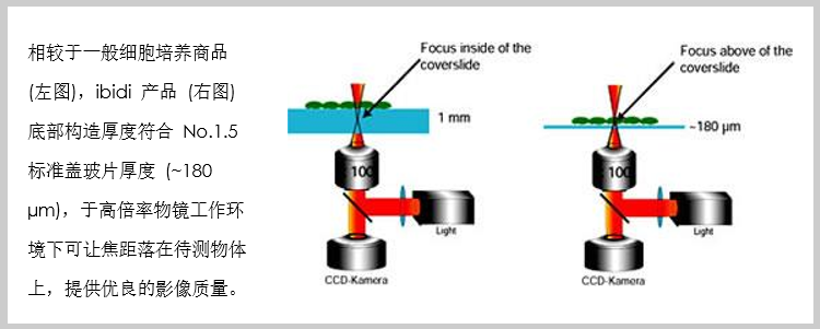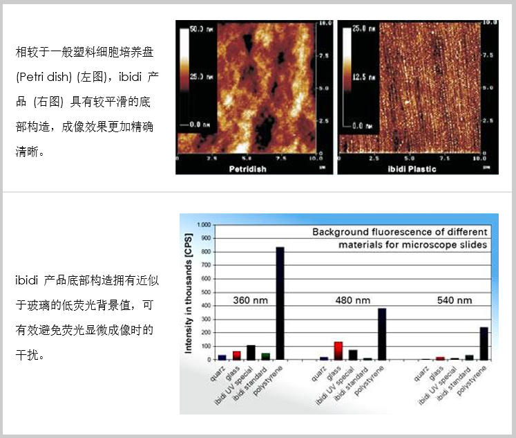 由德國 ibidi 公司所研發(fā)的 µ-Slide 與 µ-Dish 系列產(chǎn)品,與一般市面上常見的細胞培養(yǎng)器皿不同,其底部是由獨特的塑料所制造,具有可比擬玻璃材質(zhì)的高光學(xué)穿透與低熒光背景值特性,因此除了可適用于細胞培養(yǎng)以外,還可在顯微鏡下呈現(xiàn)出非常清晰漂亮的細胞影像。